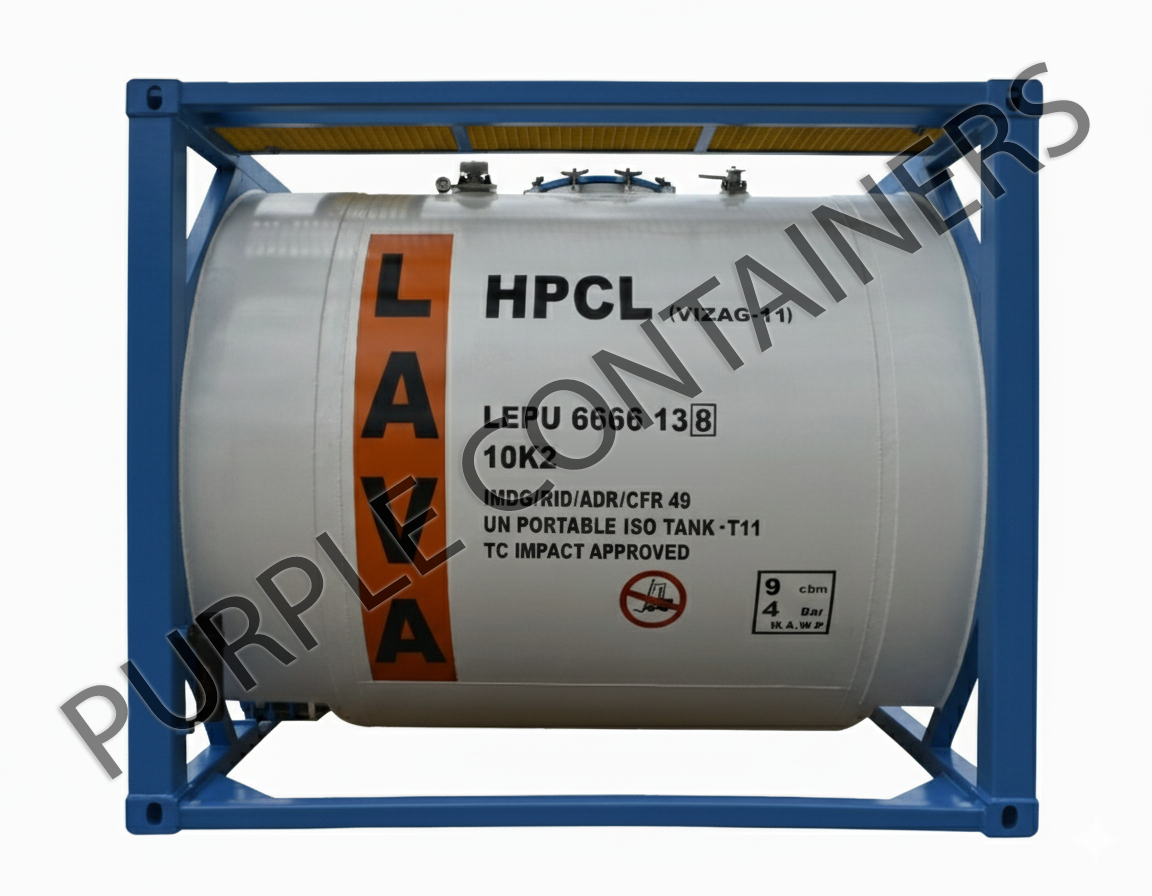 Purple Containers OPC Pvt Ltd is the sole Indian company with prototype approval and full certification for UN T11 ISO Tank Containers, designed for the storage and transport of non-hazardous chemicals globally across road, rail, and marine operations. These tanks are type-tested per ISO 1496/3 and certified by authorized classification bodies, complying with standards such as ASME, IMDG, CSC, TIR, ADR/RID, US DOT, TC, UIC, and CFR 49.